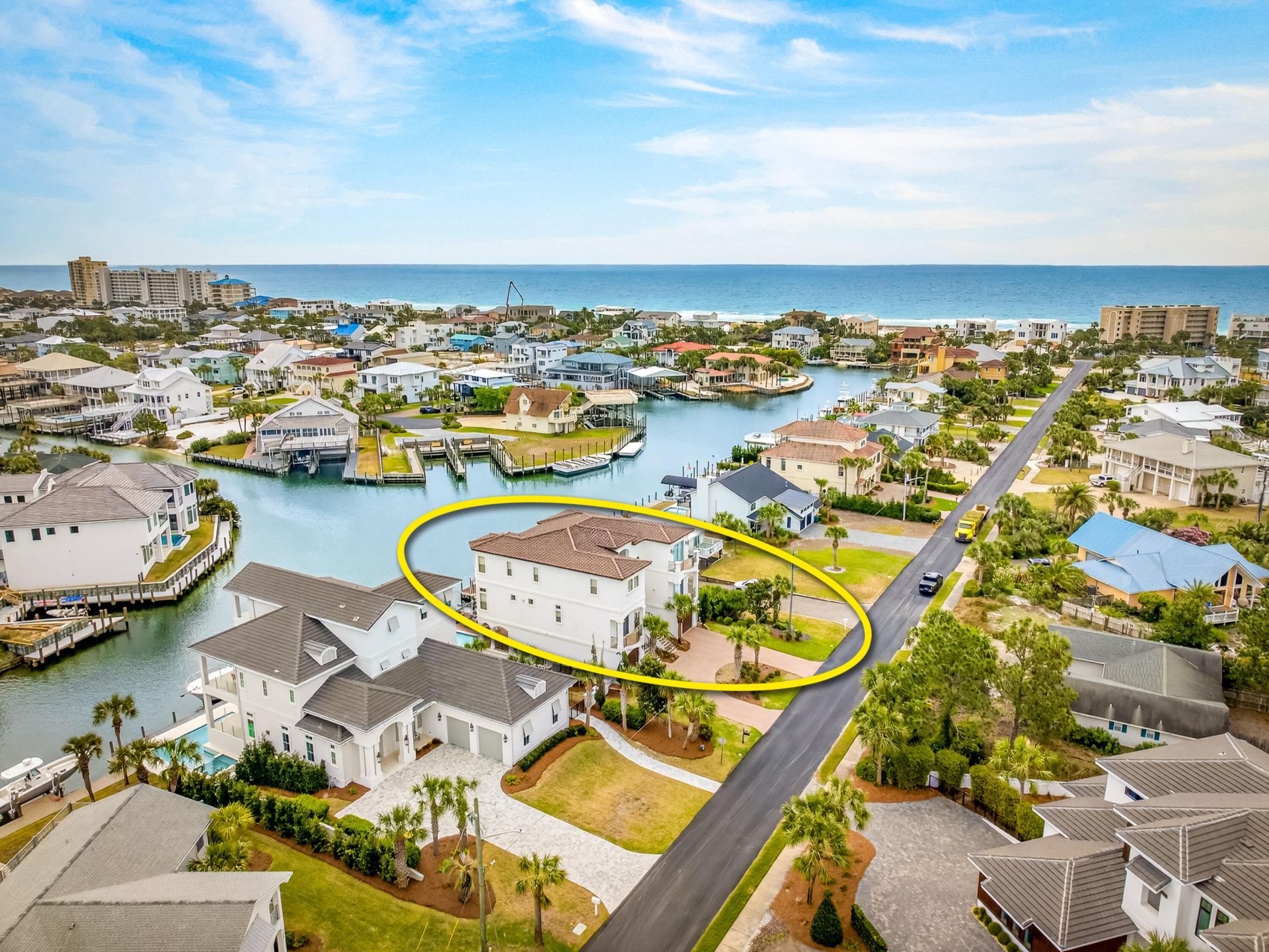 Welcome to 24 Norriego Road of the prestigious Holiday Isle waterfront community in Destin, Florida!This trophy property, a yachtsman's deep-water dream estate, was constructed new in 2014 and contains 5,000+ square foot of meticulous design and craftsmanship, 5 bedrooms with ensuite bathrooms, an elevator, a powder room serving guests located between the expansive kitchen and primary living room, and a full bath on the first floor adjacent to an area that could be flexible for the addition of an additional bedroom, bunk room, secondary media room, and/or game room, all oriented on a superior lot that offers sensational view corridors to the scenic bodies of water that surround this exclusive family compound. Spaciousness throughout the home, including the oversized garages, will.. comfortably and privately accommodate extended family to enjoy the irreplaceable lifestyle this property offers. There is such uniqueness of enjoying this spectacular estate and its private, waterfront pool, then boating to 'Crab Island', or perhaps the sensational fishing offshore in the Gulf of Mexico only minutes away from the oversized, deep-water dock, currently fitted with a 20,000lb boat lift; meanwhile others in your family can enjoy exclusive community beach access to one of the world's greatest beaches within approximately 1000' of this home's front door, which also accommodates golf carts. The finishes and features throughout are extraordinary, as the owner spared no expense whatsoever. Please inquire for further details and to schedule your private showing.