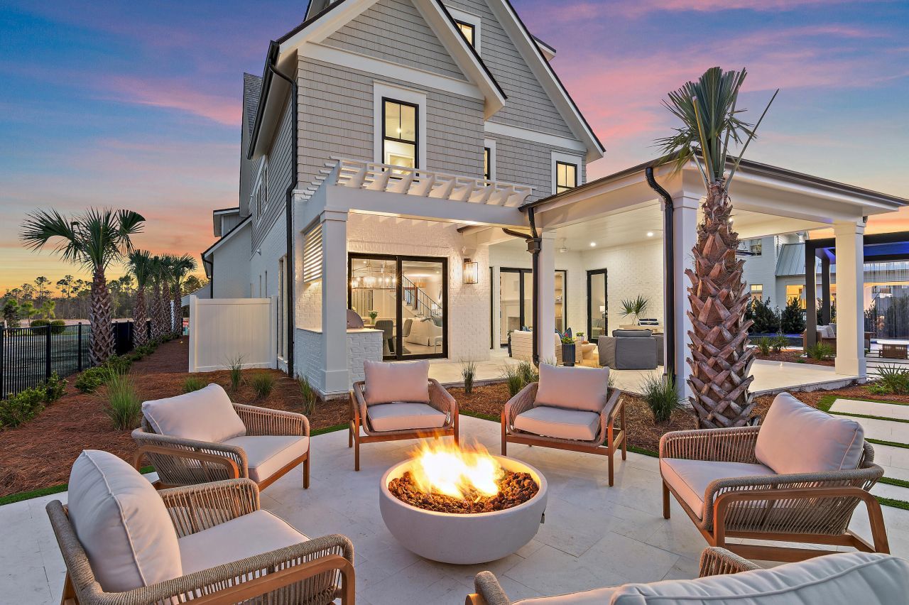 There is something inherently calming about life at the edge of water--and at 49 Sundew Place, that rhythm becomes part of the everyday. Set within the gated community of WaterSound Camp Creek and backing to a peaceful pond, this newly built residence spans 5,549 square feet across three beautifully finished levels, offering five bedrooms, five full bathrooms, and three half baths in a home designed for both comfort and elevated coastal living. One of the distinct luxuries of Camp Creek living is the inclusion of a WaterSound Beach Club membership, extending the experience beyond the home to Gulf-front amenities and a refined coastal lifestyle. Inside, natural light moves easily through spaces framed by white oak tongue-and-groove ceilings and coffered architectural detailing, creating an atmosphere that feels refined yet relaxed. The main living area is anchored by a fireplace and custom built-ins, forming an inviting setting for quiet mornings or evenings that unfold slowly with conversation and coastal breezes.The kitchen balances craftsmanship and warmth, featuring custom cabinetry, Sub-Zero appliances, and a built-in coffee station, alongside a thoughtfully designed scullery and butler's pantry that keeps entertaining seamless. Just beyond, a temperature-controlled wine cellar offers a refined space for collection and celebration alike.Outdoors, the home transforms into a private retreat. A heated pool with waterfall, spa, and fire bowls creates a striking focal point, while a swim-up bar adds a resort-inspired touch. The poolside cabana, complete with a distinctive rainfall feature roof that opens to the sky, offers a shaded place to unwind between moments in the sun. Nearby, the outdoor kitchen and fire pit set the stage for evenings that stretch long into the night.The primary suite is designed as a quiet sanctuary, featuring a spa-inspired bath with sunken shower, soaking tub, dual vanities, and thoughtfully separated spaces that allow for both privacy and ease. Upstairs, ensuite guest bedrooms offer comfort and privacy, while a **generous media lounge with wet bar--easily convertible to an additional bedroom--**creates a flexible space for movie nights, gatherings, or extended accommodations. A third-floor flex space--ideal as an office, creative studio, or additional lounge--adds yet another layer of versatility.Modern conveniences include multiple laundry rooms, surround sound throughout the interior and outdoor living spaces, and a three-car garage designed to support everyday living with ease.Blending thoughtful design with the tranquil beauty of its waterside setting, 49 Sundew Place offers a home where architecture, lifestyle, and a sense of place come together effortlessly within the distinctive landscape of Camp Creek. Professionally staged by the team at Lusso Interiors, with turn-key furnishing packages available for purchase--outdoor loungers, fire-pit chairs, and pergola furniture are offered with the sale. Inquire today and discover the coastal lifestyle this home so beautifully represents.